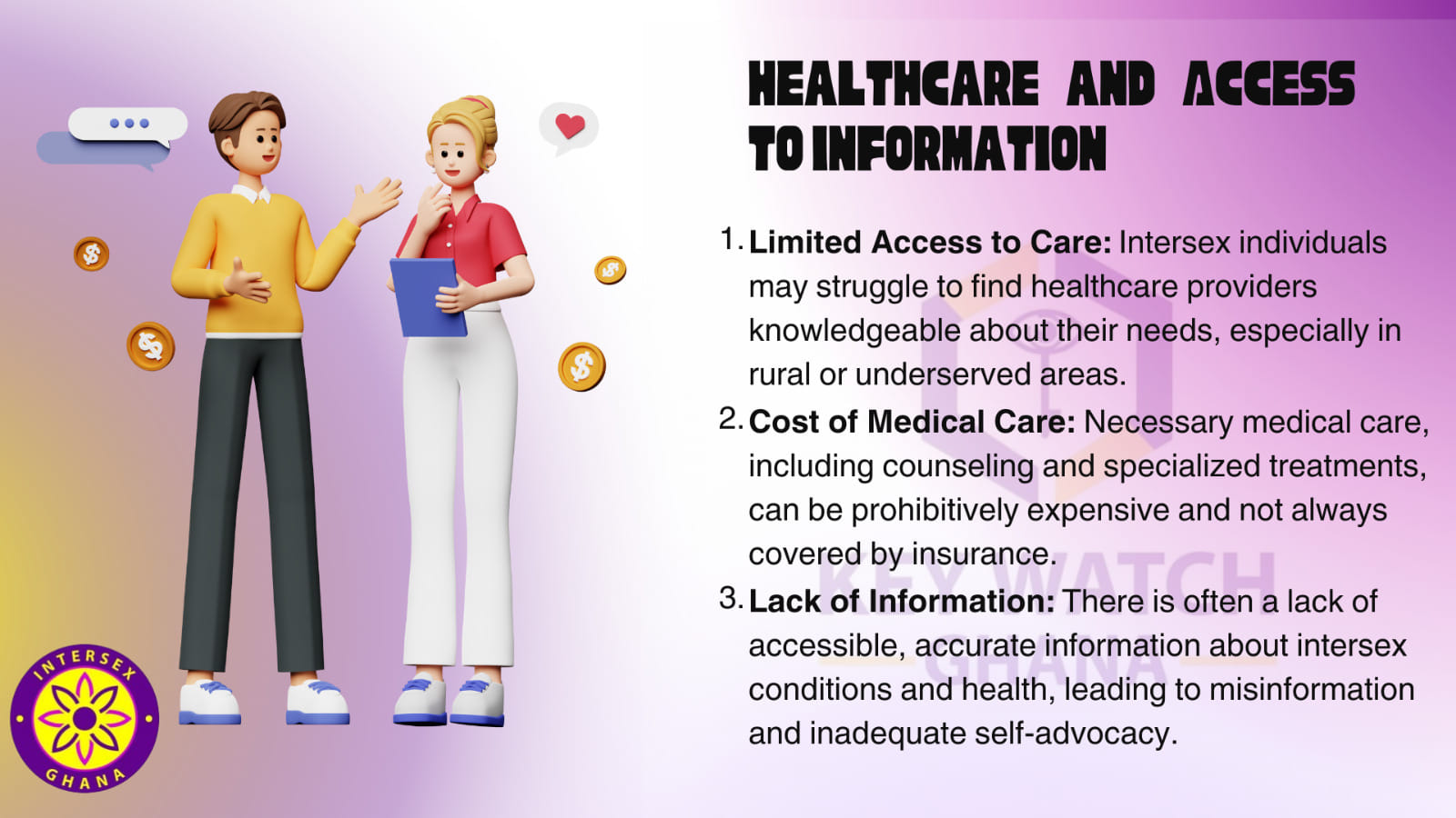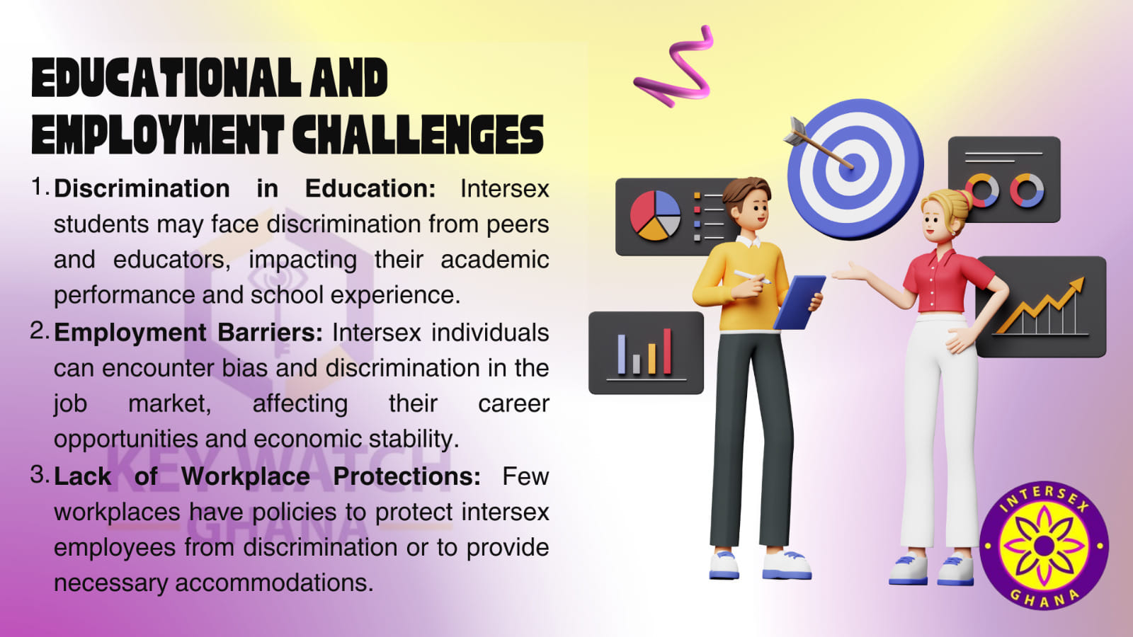 - The mental health and well-being of intersex individuals. Discrimination of intersex persons has negatively affected the ability to be hired, the ability to retain and sustain a job, and the ability to be promoted or negotiate for salary increments. All of these have negatively affected the financial well-being of intersex persons in Ghana.